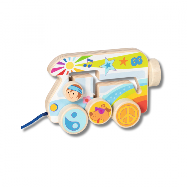 Der Camper Van besteht aus hochwertigem Holz und überzeugt durch seine langlebige, kindgerechte Verarbeitung. Das natürliche Material sorgt für ein angenehmes Spielgefühl und macht das Ziehfahrzeug zu einem treuen Begleiter über viele Abenteuer hinweg.