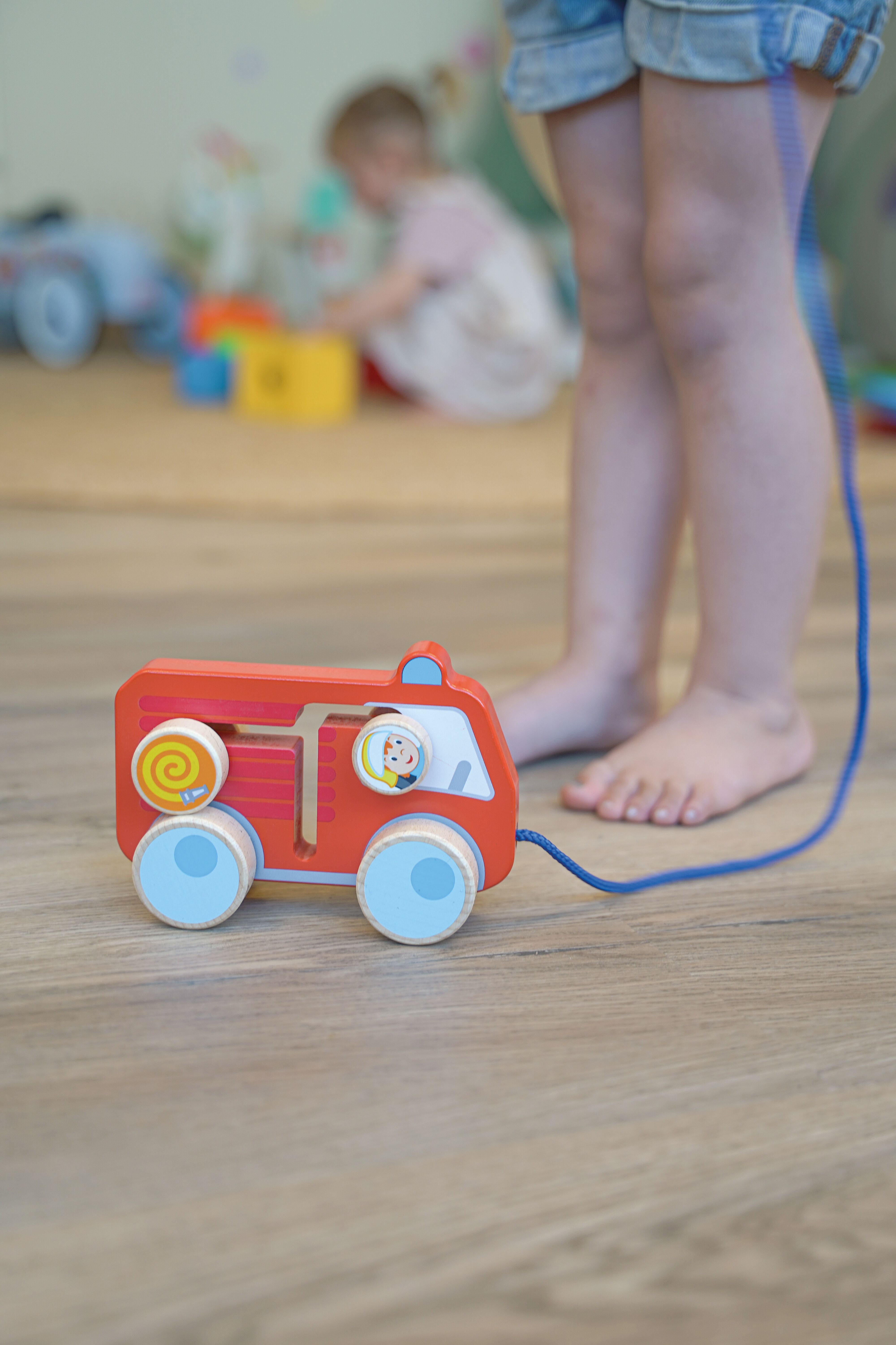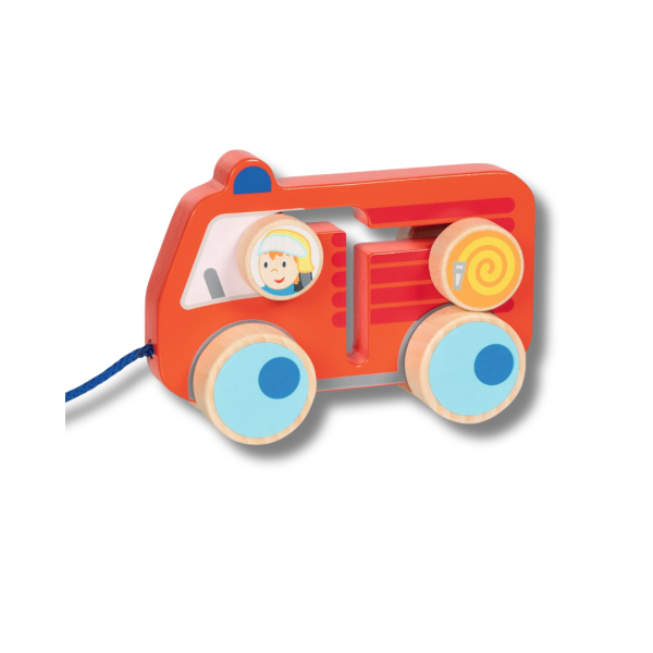 Mit seinen lebendigen Farben, der kindgerechten Form und den liebevollen Details regt das Feuerwehrauto die Fantasie an. Ob Blaulicht-Einsatz, Rettungsmission oder freies Rollenspiel – das Ziehfahrzeug lädt kleine Feuerwehrmänner und -frauen dazu ein, eigene Geschichten zu erfinden und nachzuspielen.