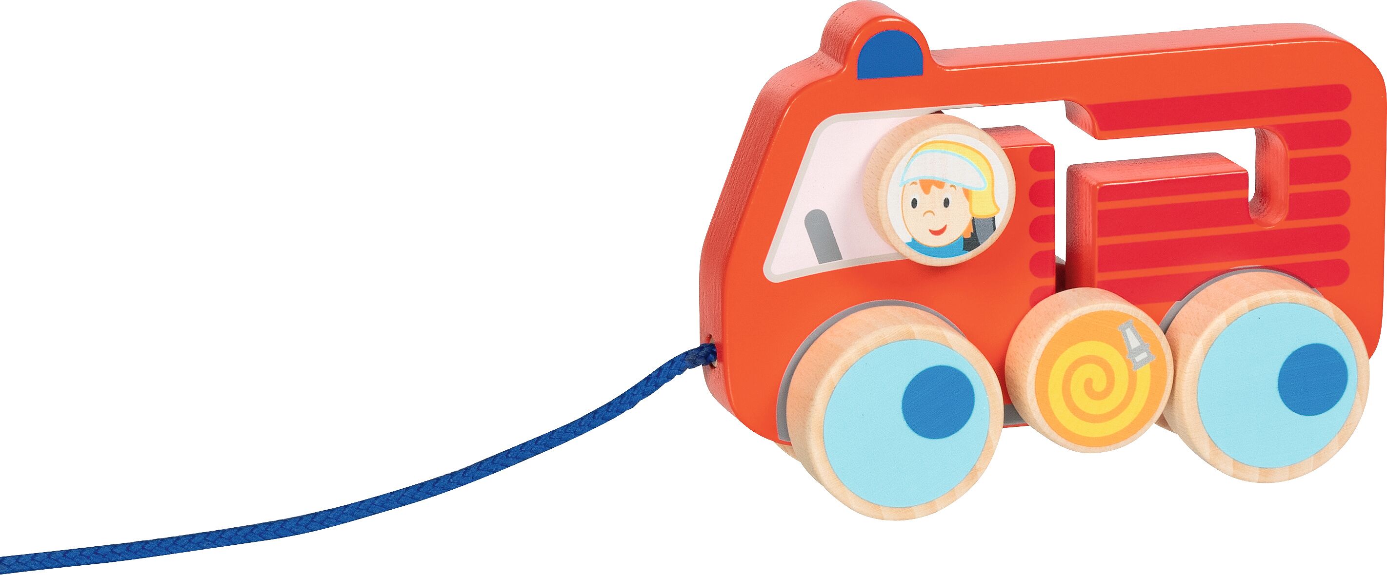 Das Feuerwehr-Ziehfahrzeug ist stabil gebaut und optimal auf die Bedürfnisse kleiner Kinder abgestimmt. Es lässt sich leicht ziehen, rollt sicher über den Boden und liegt dank seiner Form gut in Kinderhand. Abgerundete Kanten und eine robuste Verarbeitung sorgen für unbeschwerten und sicheren Spielspaß.