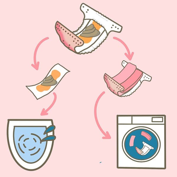 Muttermilchstuhl ist wasserlöslich, deshalb kannst du diesen einfach mit in die Waschmaschine werfen, spätestens wenn ihr mit Beikost startet, solltet ihr ein Windelvlies verwenden. So kannst du den Stuhlgang ganz einfach in der Toilette oder dem Müll entsorgen. Bitte achte darauf, ob dein Vlies heruntergespült werden kann, je nach Material und Hersteller kann es dort Unterschiede geben.